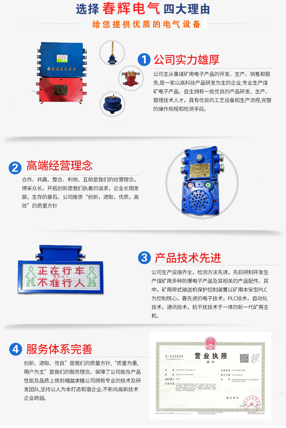 淮南春輝電氣設(shè)備有限公司 淮南市春輝電氣設(shè)備有限公司坐落在具有百年煤炭開(kāi)采歷史的安徽淮南煤都,位于淮南經(jīng)濟(jì)技術(shù)開(kāi)發(fā)區(qū),主要從事煤礦用電子產(chǎn)品的開(kāi)發(fā),生產(chǎn),銷(xiāo)售和服務(wù)。是一家以高科技產(chǎn)品研發(fā)為主的企業(yè),專(zhuān)業(yè)生產(chǎn)煤礦電子產(chǎn)品。自主擁有一批產(chǎn)品研發(fā),生產(chǎn),管理技術(shù)人才。具有先進(jìn)的工藝設(shè)備和生產(chǎn)流程,完整的操作規(guī)程和檢測(cè)方法。公司產(chǎn)品已經(jīng)成為煤礦安全生···